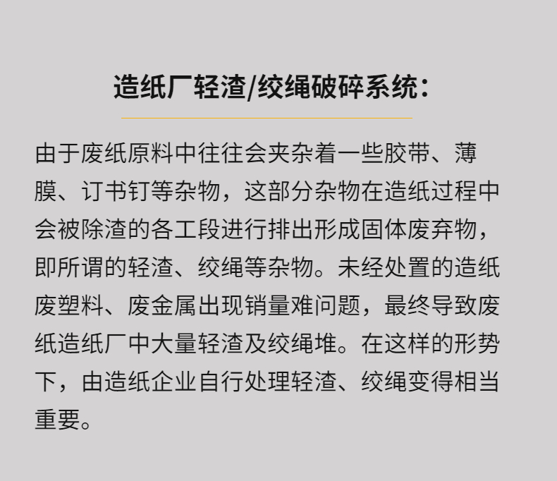 專業(yè)針對(duì)紙廠輕渣,絞繩等廢棄物而設(shè)計(jì),整機(jī)技術(shù)來源于歐洲,采用微電腦(PC)自動(dòng)控制,設(shè)啟動(dòng)、停止、反轉(zhuǎn)及超載自動(dòng)反轉(zhuǎn)控制功能,具有低速、大轉(zhuǎn)矩、低噪音等特點(diǎn),軸承座采用對(duì)開型式,拆裝換刀容易方便適合撕碎特大、特厚難碎物料。