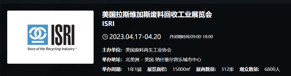 美國國際廢料回收工業(yè)展覽會是由美國廢料回收工業(yè)協(xié)會舉辦的展會,是全球最大的廢料回收行業(yè)展會,該展會每年都在不同的城市舉辦。