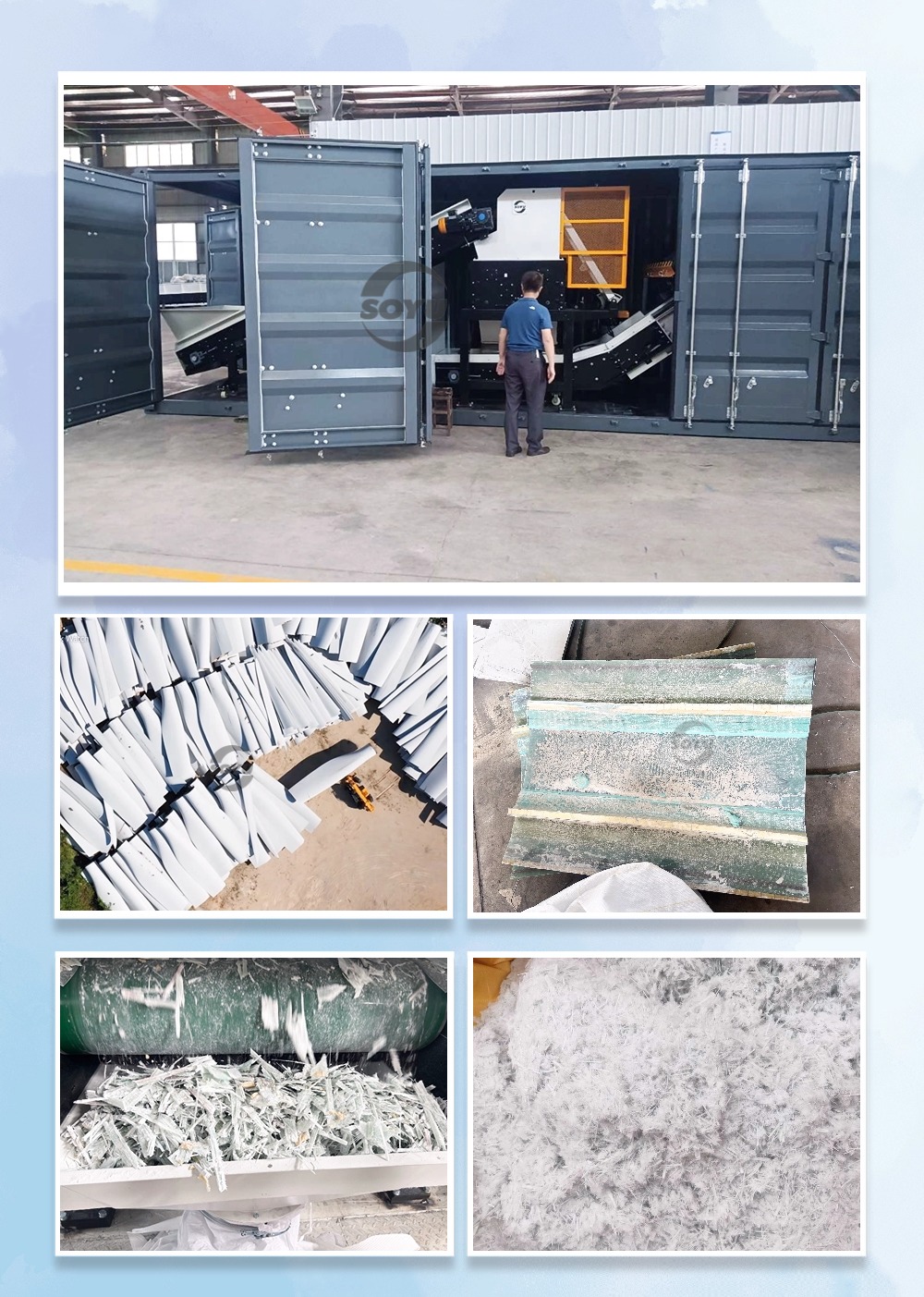 移動集裝箱式退役風(fēng)電葉片(玻璃鋼制品)資源化處置系統(tǒng)