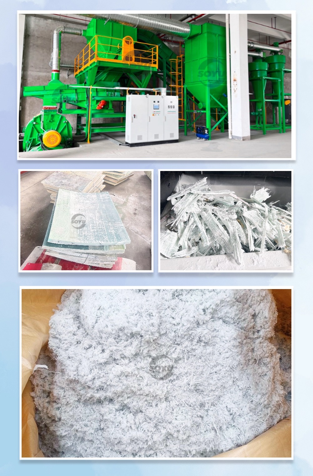 首譽的退役風(fēng)電葉片(玻璃鋼制品)資源化處置系統(tǒng)采用先進的處理技術(shù):集撕碎、破碎、分選、資源化利用等功能于一體,能夠?qū)崿F(xiàn)對退役風(fēng)電葉片的高效、環(huán)保回收。能夠?qū)⑼艘鄣娘L(fēng)電葉片有效處理成粉末,便于后續(xù)的回收利用或安全填埋。